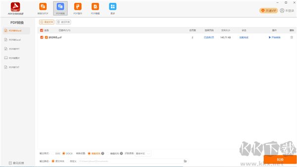 3、點(diǎn)擊pdf轉(zhuǎn)換菜單,選擇目標(biāo)格式(如Word、Excel、PPT、圖片等),設(shè)置輸出選項(xiàng)后點(diǎn)擊“開始轉(zhuǎn)換”將PDF導(dǎo)出為其他文件;也可將其他文件拖入軟件直接轉(zhuǎn)換為PDF。