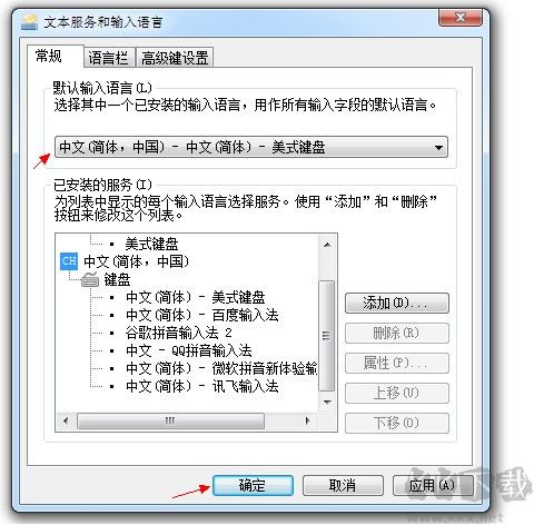 2、打開設(shè)置后,選擇:中文(簡(jiǎn)體,中國(guó)) - 中文(簡(jiǎn)體) - 美式鍵盤