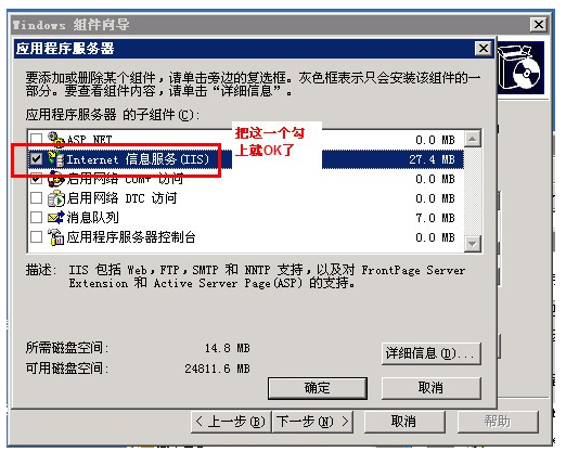 4、解壓縮后 到“添加刪除windows組件”選擇"Internet信息服務",下一步-->它提示時,你選擇解壓縮的目錄,選擇那個程序即可。