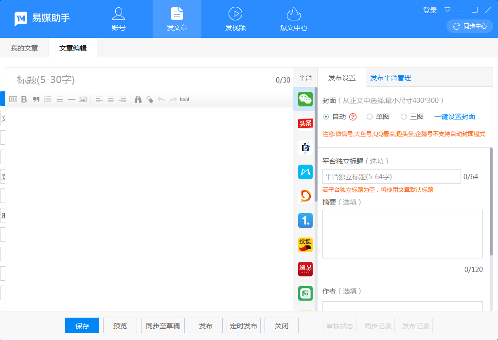 易媒助手是一款超好用了自媒體運營工具,它可以幫助你高效的完成文章的編寫、創(chuàng)作。同時解決了 決傳統(tǒng)媒體的管理、創(chuàng)作、分發(fā)問題,對接全網(wǎng)主流平臺,支持超200個賬號管理,一鍵分發(fā)內(nèi)容,省時省力,更有AI智能重寫、原創(chuàng)度檢測、爆文系統(tǒng)等專業(yè)工具,讓你更好的運營好你的自媒體。