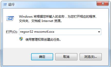 4、按下WIN+R打開運(yùn)行,然后輸入regsvr32 mscomctl.ocx,點擊回車按鈕,即可進(jìn)行修復(fù)。