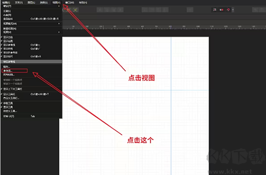 2、點(diǎn)擊菜單欄的“視圖”,再在彈出的下拉菜單中找到“參考線”,并點(diǎn)擊“參考線”。