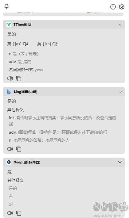 可在翻譯源自由設(shè)置,解決各類翻譯源缺乏詞典及英式、美式發(fā)音功能的問(wèn)題。