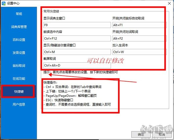 提示:首先點擊需要修改的設(shè)置,按下新的快捷鍵即可。