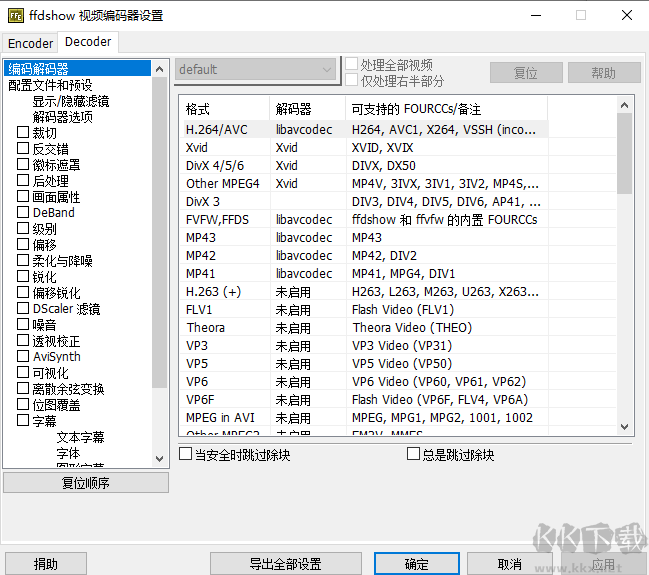 4、切換到【Decoder】解碼器部分,這里列出了所有支持的格式和對(duì)應(yīng)的解碼方式,按實(shí)際需要挑選合適的就行。