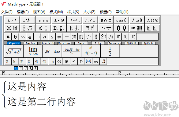 通過從該軟件的符號面板中選取模板,并在空白位置輸入內(nèi)容,快速構(gòu)建公式。輸入過程中會自動遵循數(shù)學(xué)排版的間距規(guī)則。