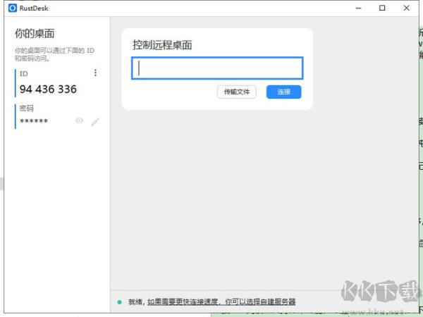 控制端 軟件的控制端設(shè)計(jì)為半便攜式,不需要事先安裝或者配置,打開下載文件解壓,雙擊rustdesk.exe即可啟動(dòng)
