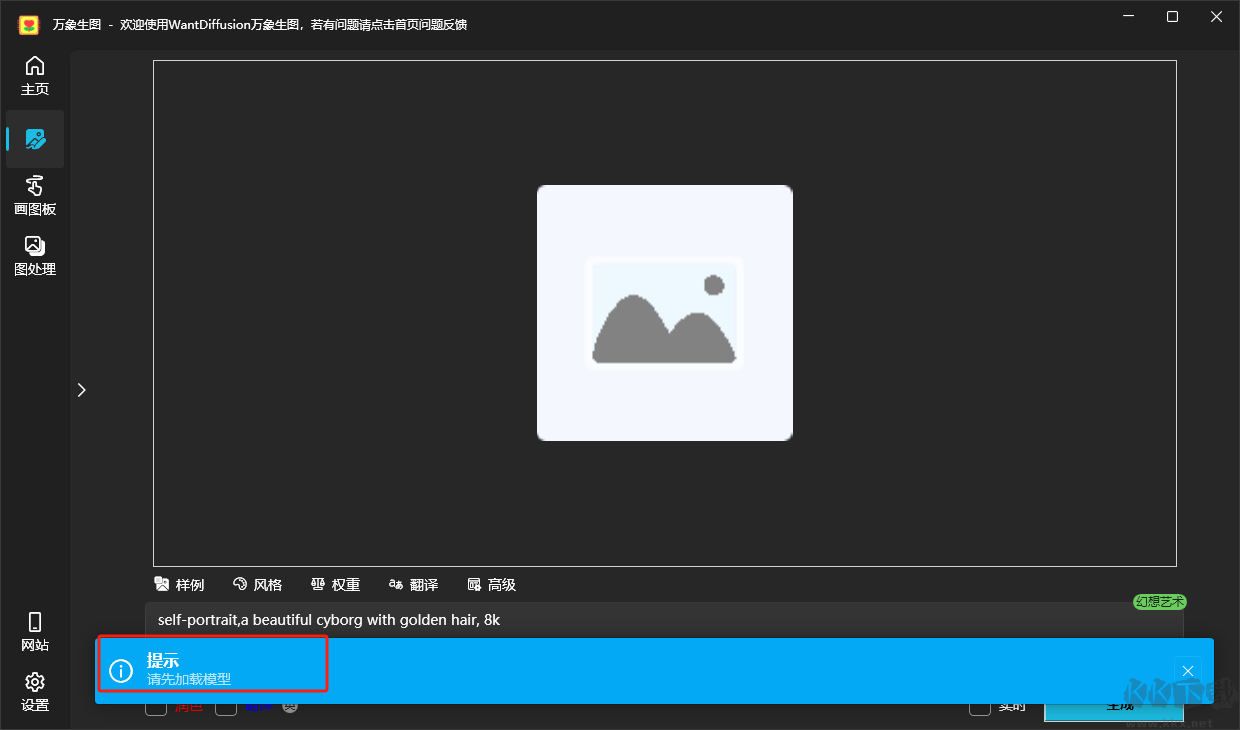 1、用戶下載安裝好萬象生圖軟件后,運行需要先載入模型
