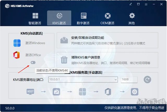 搭建KMS服務器[手動激活]:可自定義KMS服務器地址與端口信息。