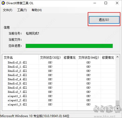 5、修復完成后,點退出按鈕關(guān)閉程序就可以了。整個過程可能需要點時間,請耐心等待。