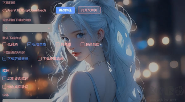 2、關(guān)于桌面歌詞的設(shè)置也提供了顏色和字體大小的簡(jiǎn)單設(shè)置,也夠用了。