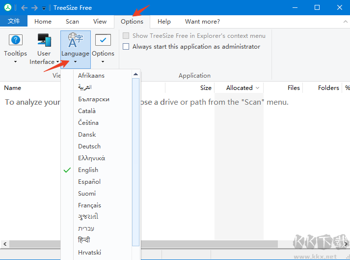 TreeSize Free(磁盤工具)怎么切換中文