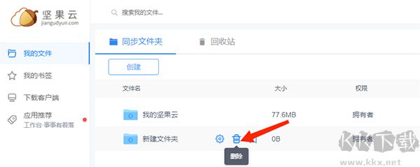 2、進入訪問網(wǎng)頁端界面,在【同步文件夾】欄目中,選擇需要刪除的文件夾點擊【刪除】選項,