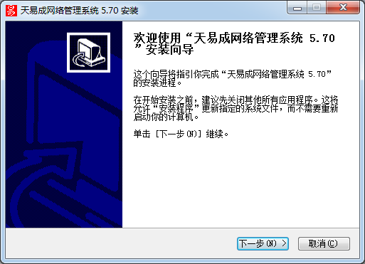 1.到本站下載安裝天易成網(wǎng)管,打開安裝程序,點擊下一步繼續(xù)安裝