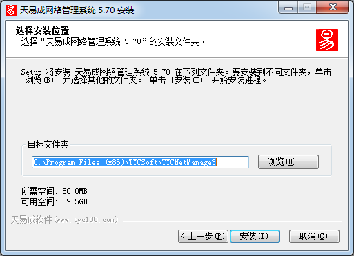 選擇“天易成網(wǎng)絡(luò)管理系統(tǒng)5. 70”的安裝文件夾。