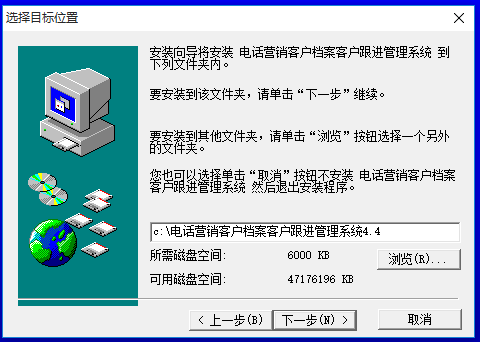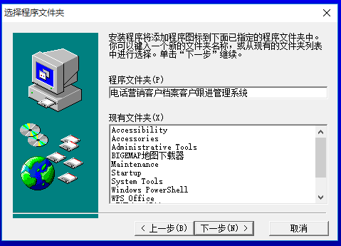 安裝向?qū)惭b電話(huà)營(yíng)銷(xiāo)客戶(hù)檔案客戶(hù)跟進(jìn)管理系統(tǒng)到下列文件夾內(nèi)。