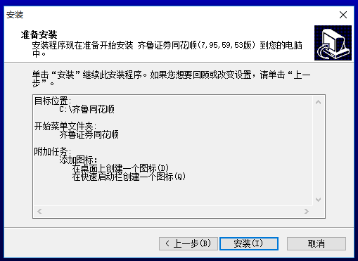 安裝程序現(xiàn)在準備開始安裝齊魯證券同花順(7, 95, 59, 53版)到您的電腦中。