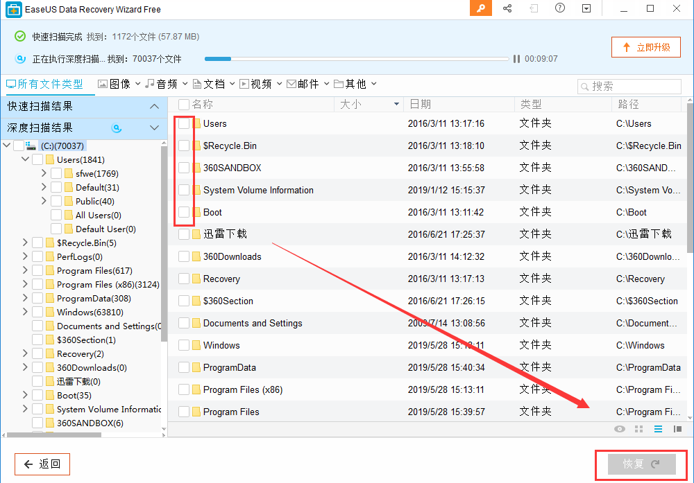 3、在深度掃描結(jié)果的區(qū)域里面可以查看相關(guān)的文件;