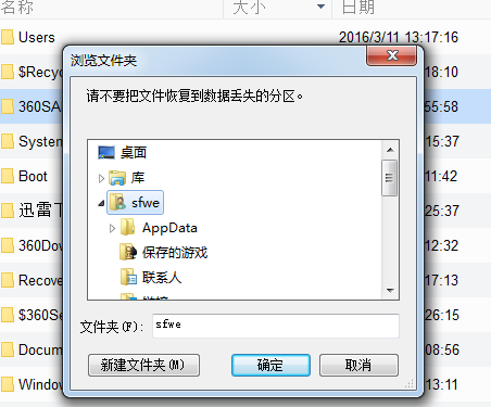 5、選擇恢復(fù)文件的保存位置,點(diǎn)擊確定即可開(kāi)始恢復(fù)找到的丟失文件!
