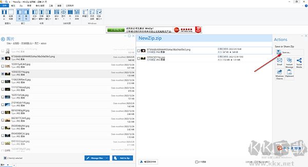3、如果你想要將多個文件添加到一個壓縮文件中,那么我們可以批量將自己想要進(jìn)行壓縮的文件添加到中間的窗口中即可,之后點擊右側(cè)的【save as】按鈕進(jìn)行保存。