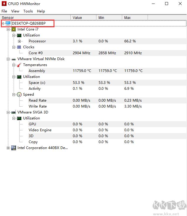 4、通過圖示紅色一欄可以看到CPU的溫度,一般看第一欄Value就可以了,第二、第三欄目是溫度波動(dòng)的最小值與最大值;