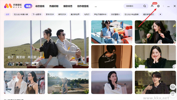 1、進(jìn)入芒果壁紙PC版后點(diǎn)擊右上角的設(shè)置。