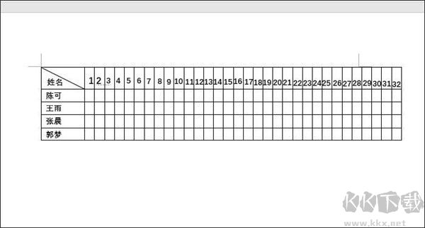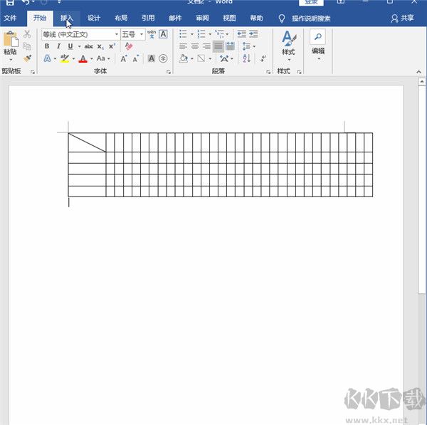 我們首先是打開(kāi)Word文檔,然后點(diǎn)擊【插入】--【表格】--【插入表格】;將【列數(shù)】設(shè)置為32,【行數(shù)】設(shè)置為5,點(diǎn)擊確定。