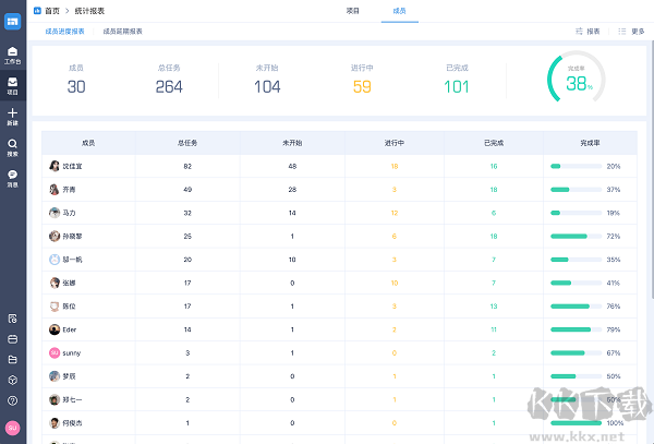 提供可自定義的可視化儀表盤,管理者可從人員、周期、工時(shí)、完成率等多角度實(shí)時(shí)掌握項(xiàng)目與任務(wù)的核心指標(biāo)。