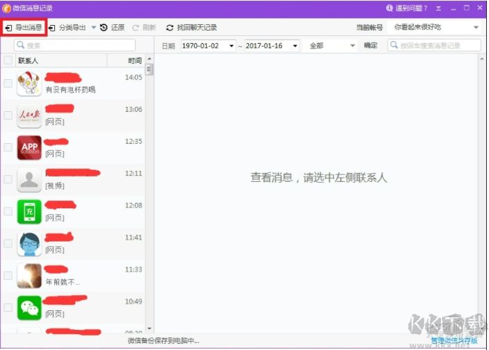 2、進(jìn)入微信聊天記錄管理界面:微信消息【導(dǎo)出】