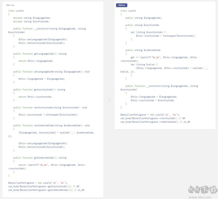 1、屬性鉤子能夠支持計算屬性,這類屬性可被 IDE 與靜態(tài)分析工具直接識別,不用再編寫可能失效的 docblock 注釋。同時,它們還能可靠地對數(shù)值進行預處理或后處理,省去了檢查類中是否存在對應 getter 或 setter 的步驟。