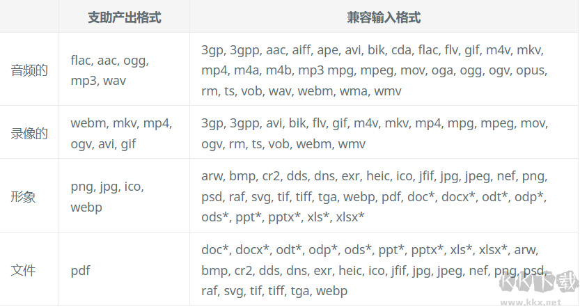 2、支持多種文件格式轉(zhuǎn)換,涵蓋音頻、視頻、圖像及文檔類型。