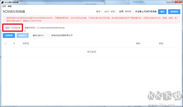 2、待安裝完成后打開軟件,點擊添加電腦中的NCM格式文件