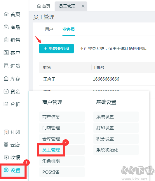 路徑:電腦端左側(cè)導(dǎo)航欄【設(shè)置】-【員工管理】-【業(yè)務(wù)員-新增業(yè)務(wù)員】。