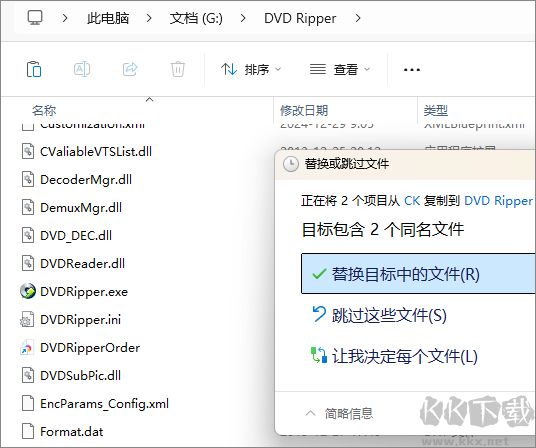 3、關(guān)閉當(dāng)前程序,將壓縮包內(nèi) CK 文件夾里的全部文件復(fù)制到程序安裝目錄中,替換掉相同名稱的文件。(PS:默認(rèn)安裝路徑為 C:\Program Files (x86)\Aimersoft\DVD Ripper)