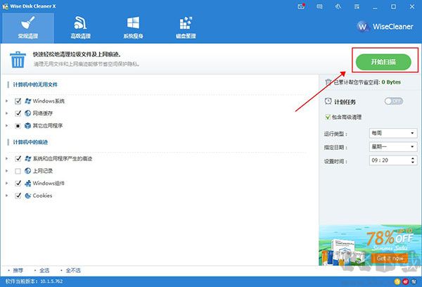 Wise Disk Cleaner 能夠清除臨時文件、日志、索引數(shù)據(jù)、備份文件等各類垃圾,幫助釋放硬盤容量。