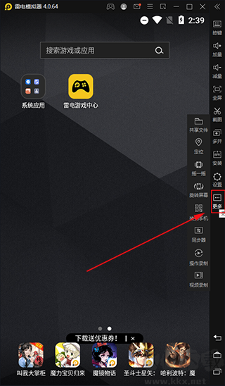 6、模擬器右側(cè)欄提供多種實(shí)用功能,點(diǎn)擊“更多”可展開(kāi)其他操作選項(xiàng)。