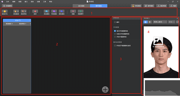 該面板主要用于制作觸發(fā)類效果,例如通過比心動作觸發(fā)妝容顯示。用戶可在此設(shè)置觸發(fā)條件、特效播放時長等參數(shù),增強特效的交互性與趣味性。