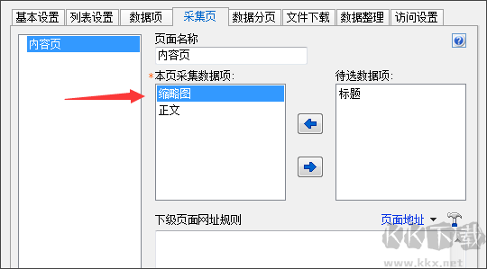 2、需為“縮略圖數(shù)據(jù)項(xiàng)”設(shè)置采集規(guī)則