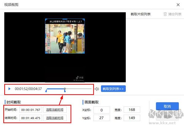 4、設(shè)置時(shí)間截取以及視頻裁剪長寬度,點(diǎn)擊保存即可