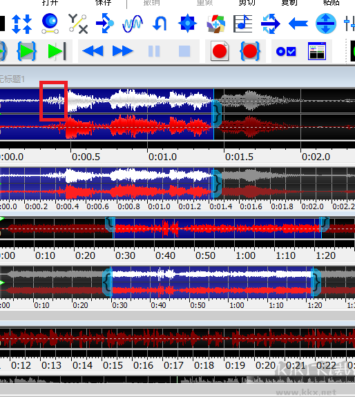 我們先在GoldWave中文版中找到需要保留的部分,大概在哪個(gè)位置,然后點(diǎn)擊上方的“剪刀”,把這一段截取下來(lái)。這里有一個(gè)小細(xì)節(jié),如果你需要的那段音頻非常短,可以點(diǎn)擊GoldWave中文版主頁(yè)面上方的“放大”鍵,放大波形哦!截取音頻之后,點(diǎn)擊上方的“剪切”。