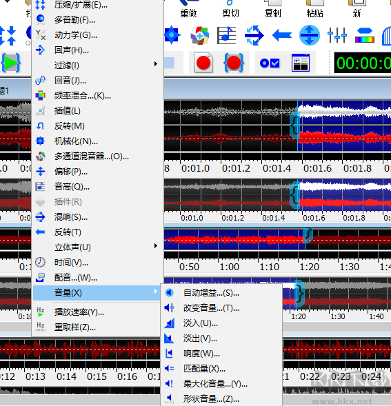 4、內(nèi)置多種聲音特效,支持倒轉(zhuǎn)、回音、搖動(dòng)、邊緣(Flange)、動(dòng)態(tài)處理、增強(qiáng)、扭曲等多樣化音效應(yīng)用;