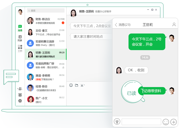可快速創(chuàng)建企業(yè)內(nèi)部溝通群,500人超大規(guī)模。群內(nèi)直接發(fā)起電話會議、短信群發(fā)。