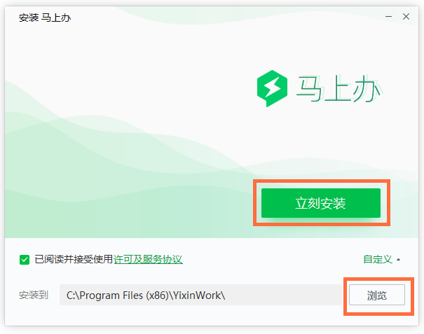 點擊【自定義】,選擇軟件保存位置,點擊【立即安裝】,