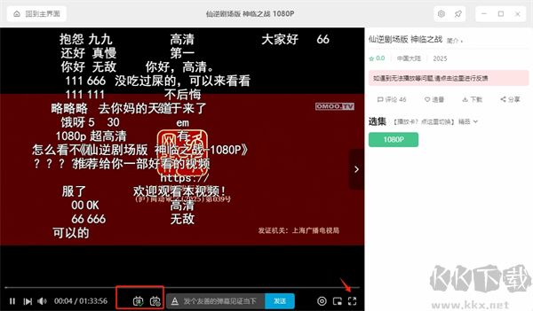 4、播放時可查看和發(fā)送彈幕,右下角按鈕可進入全屏模式;