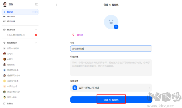 3、按實際需要填寫智能體圖像、名稱等相關信息;