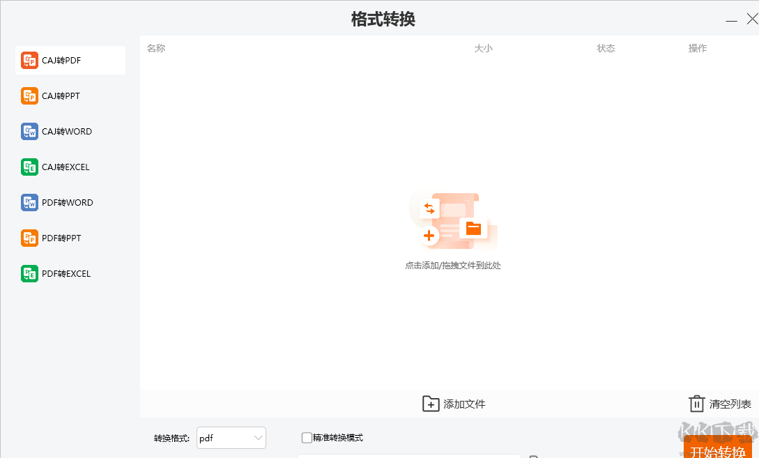 6、轉(zhuǎn)換界面如圖所示,將CAJ轉(zhuǎn)換為不同的office文檔格式,也支持將PDF轉(zhuǎn)換為wps文檔格式。