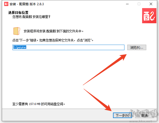 1、解壓安裝包,運(yùn)行“peiyine-2.8.3.exe”,可自定義安裝路徑,點(diǎn)擊下一步;