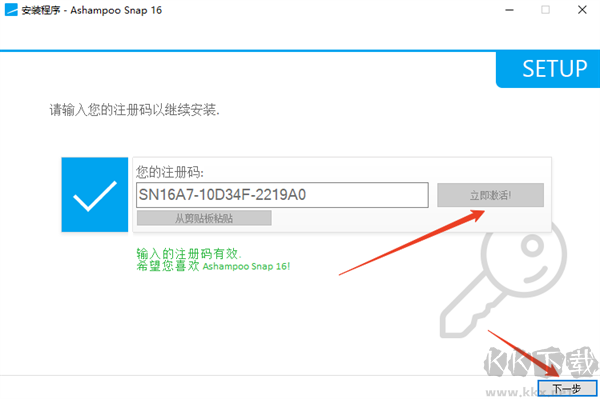 5、將注冊碼輸入到箭頭所指,而后點擊立即激活