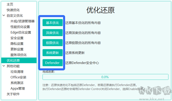 4、新增優(yōu)化恢復(fù)機(jī)制,若對當(dāng)前設(shè)置效果不滿意,可隨時(shí)撤回操作,還原系統(tǒng)狀態(tài)。