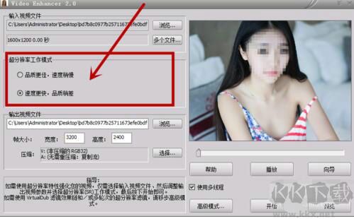 3、選擇好要處理的文件以后,然后再設(shè)置分辨率工作模式,這個設(shè)置要根據(jù)個人的需求而定。